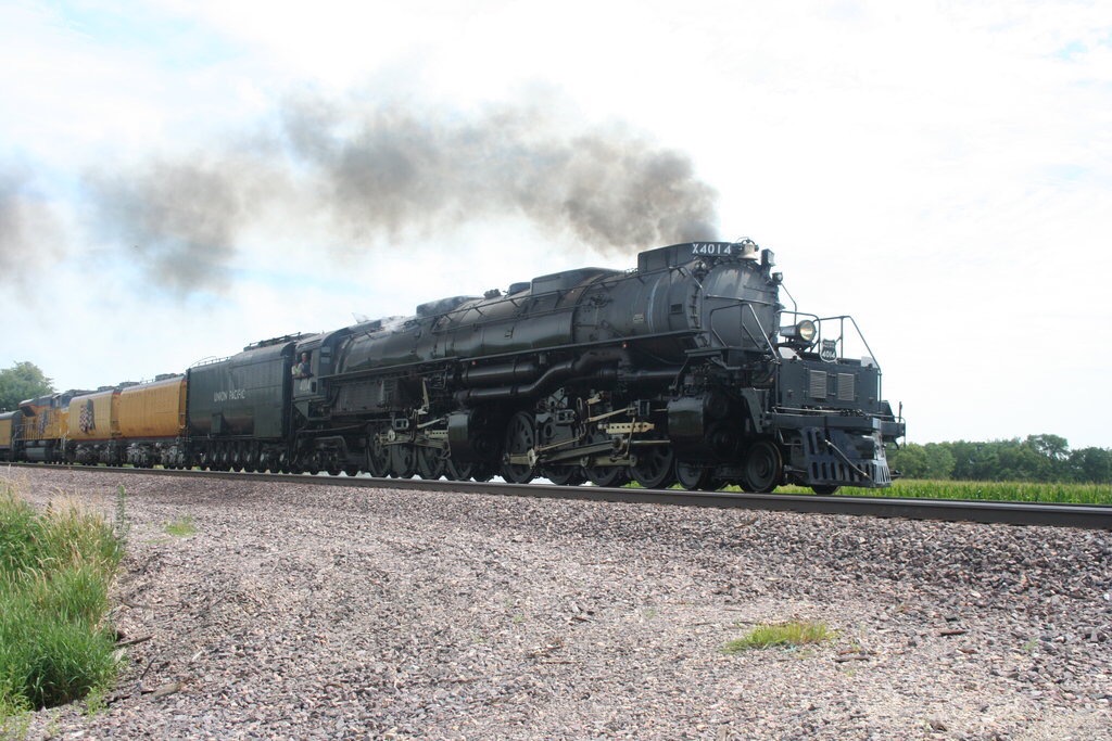 Union Pacific 4014 highballing through Conway, Iowa, August, 2019